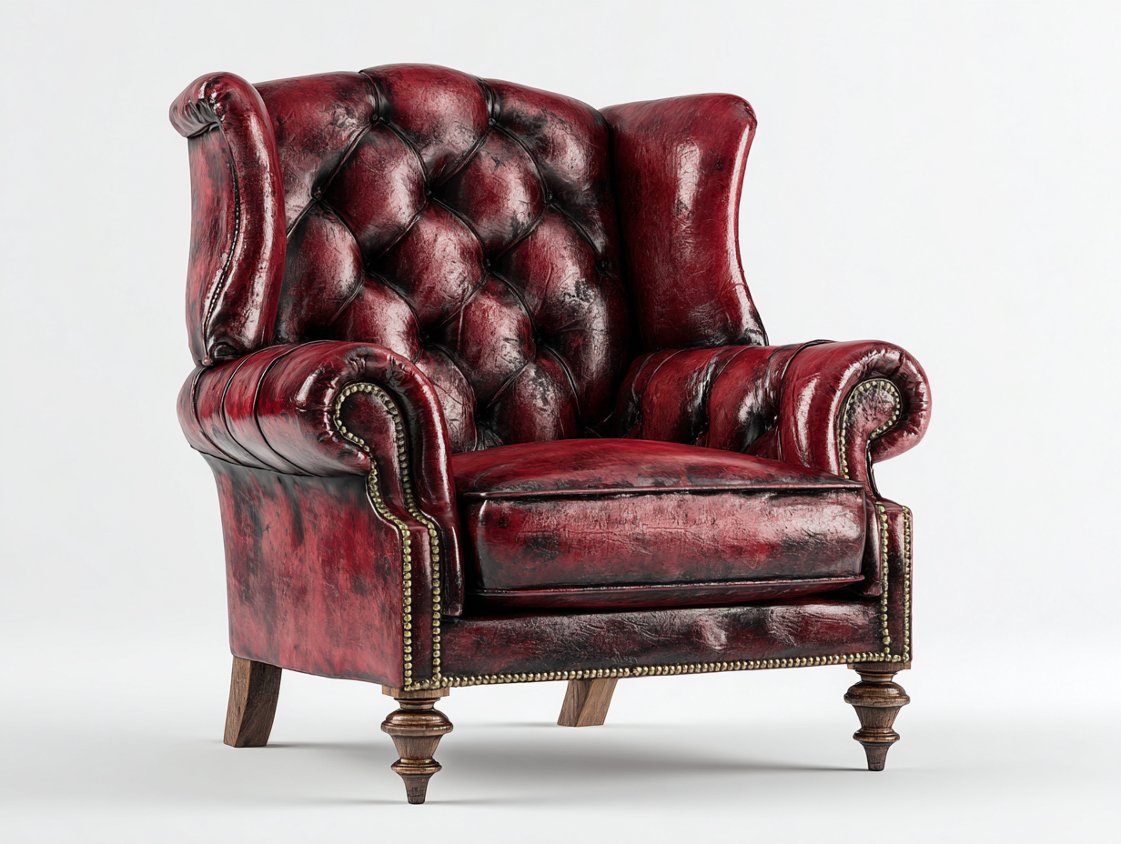 Poltrona in pelle 85x90x105 cm rivestita in pelle - rosso scuro - stile classico per soggiorno