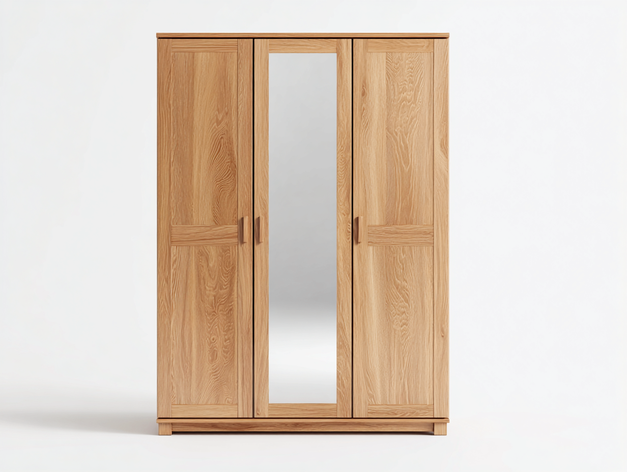 Le tre ante consentono un accesso agevole al vano interno, facilitando la suddivisione degli indumenti. Il design sobrio si integra facilmente con diversi stili di arredamento.