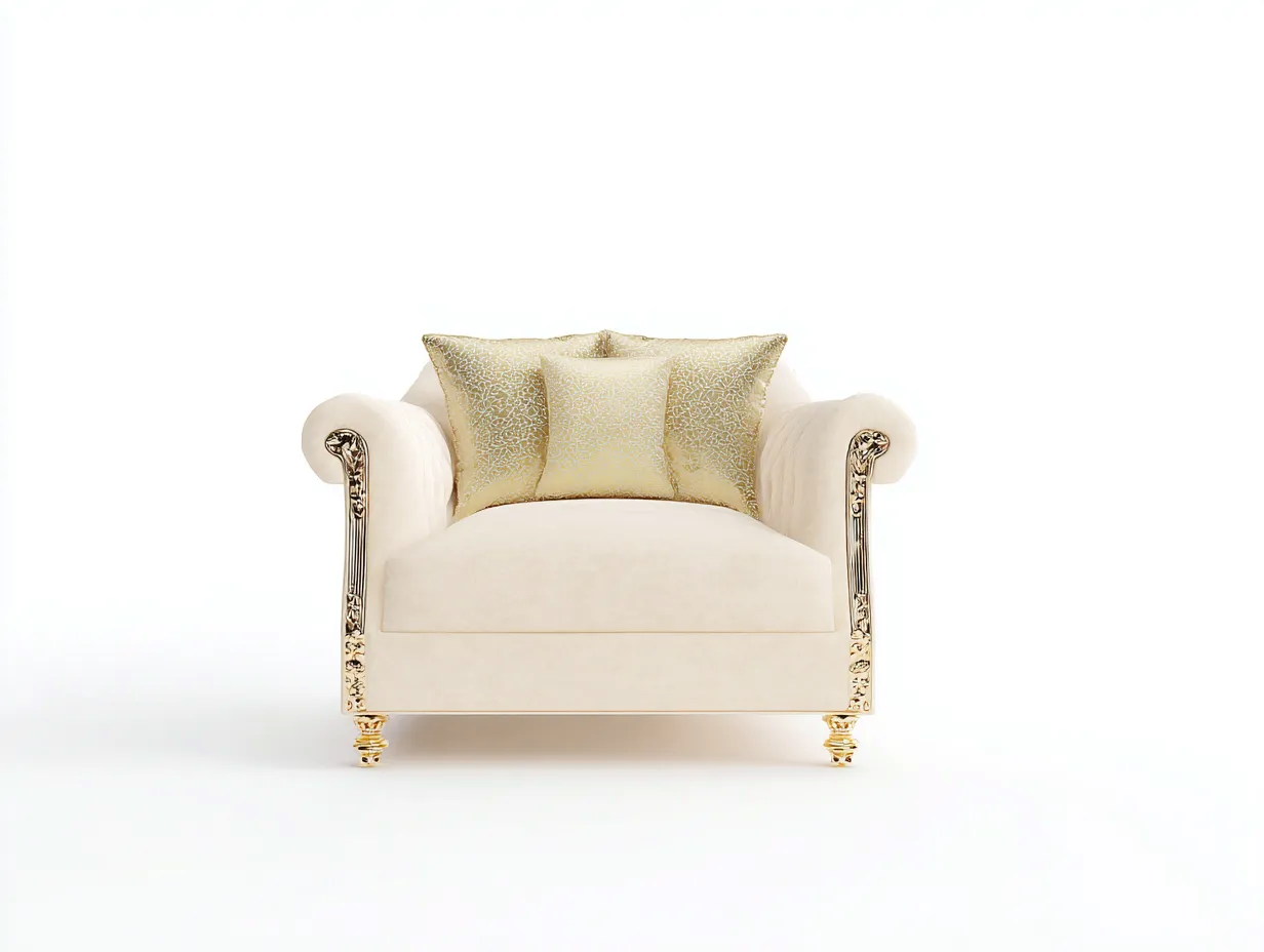 Poltrona lounge-Tessuto-Legno-Metallo-92x90x78 cm-Crema-Oro-Stile classico